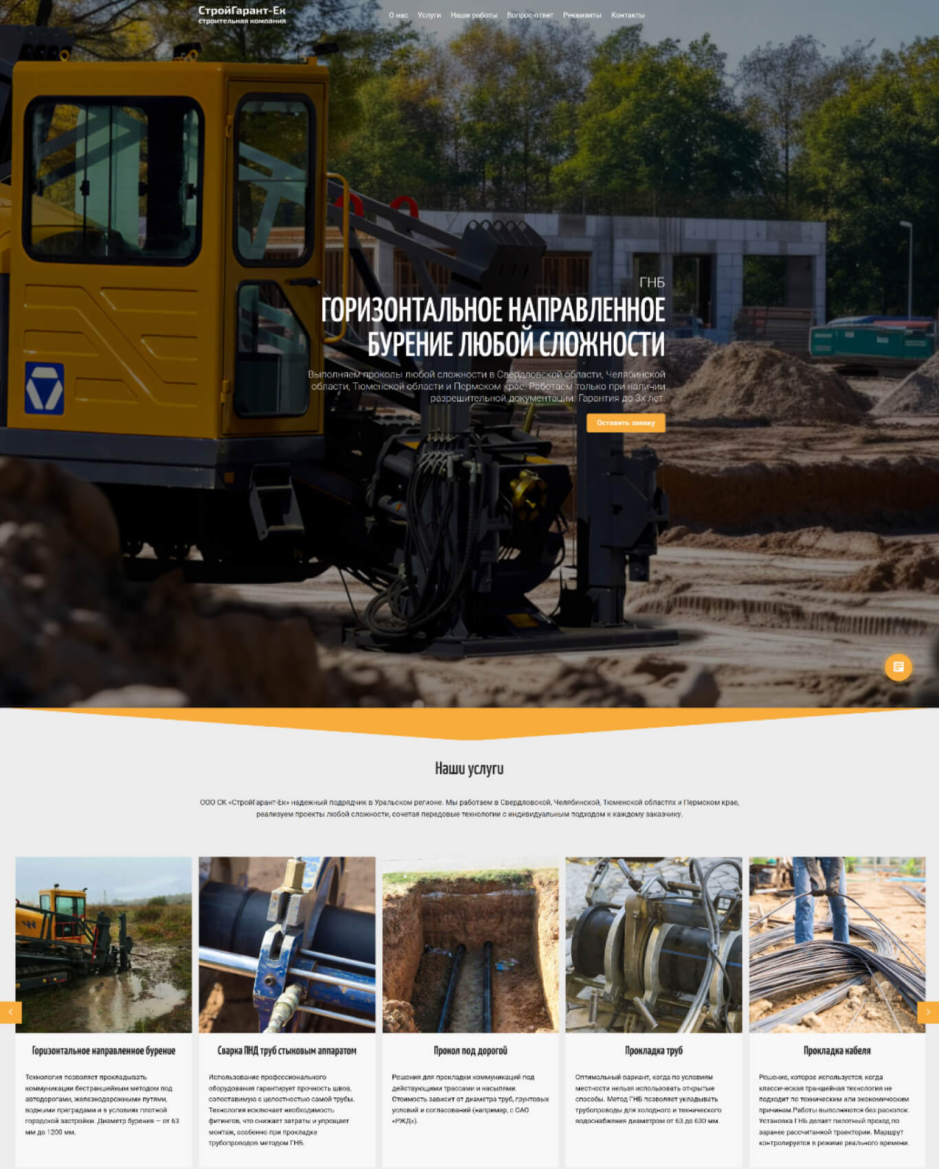 Основанная в 2014 году, компания ООО СК «СтройГарант-Ек» заслужила репутацию надежного подрядчика в Уральском регионе, специализируясь на горизонтальном направленном бурении (ГНБ) и комплексной прокладке инженерных сетей.